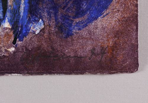 1984. Farblithografie / Feder- & Pinsellithografie, in 4 Farben, auf kräftigem glattem hellchamois Velinkarton. – Originale Künstlergrafik, von Wolfgang Henne. – Auflage Exemplar Nr. 5/7. – 60,0 x 42,0 cm (Darstellung / Blatt).