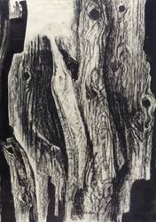 1960-1970. Zeichnung / Kohle & Tusche, auf leichtem gelblichem Velin. – Originale Künstlergrafik, von Franz Schicker. – Unikat. – 61,0 x 43,0 cm (Darstellung / Blatt).