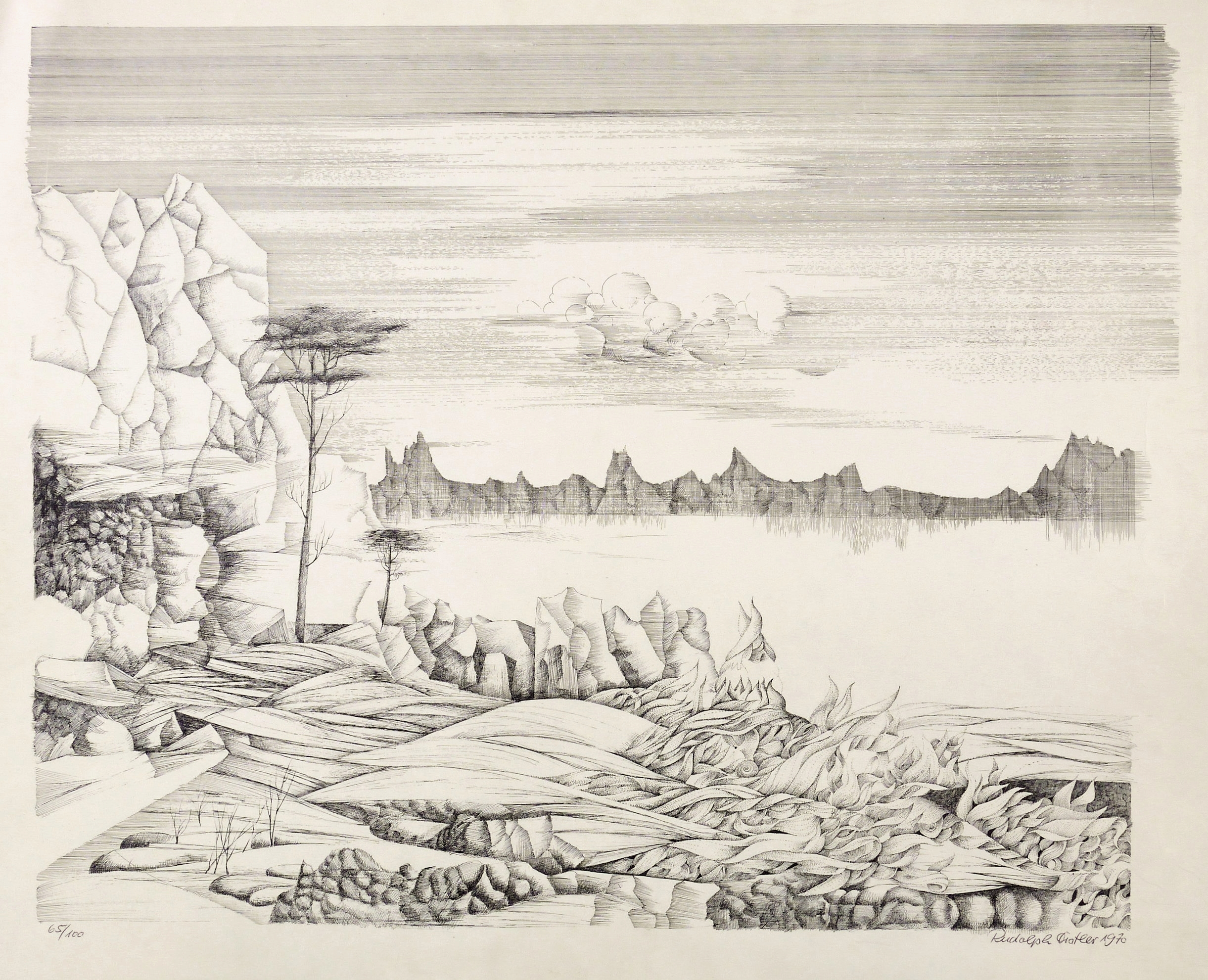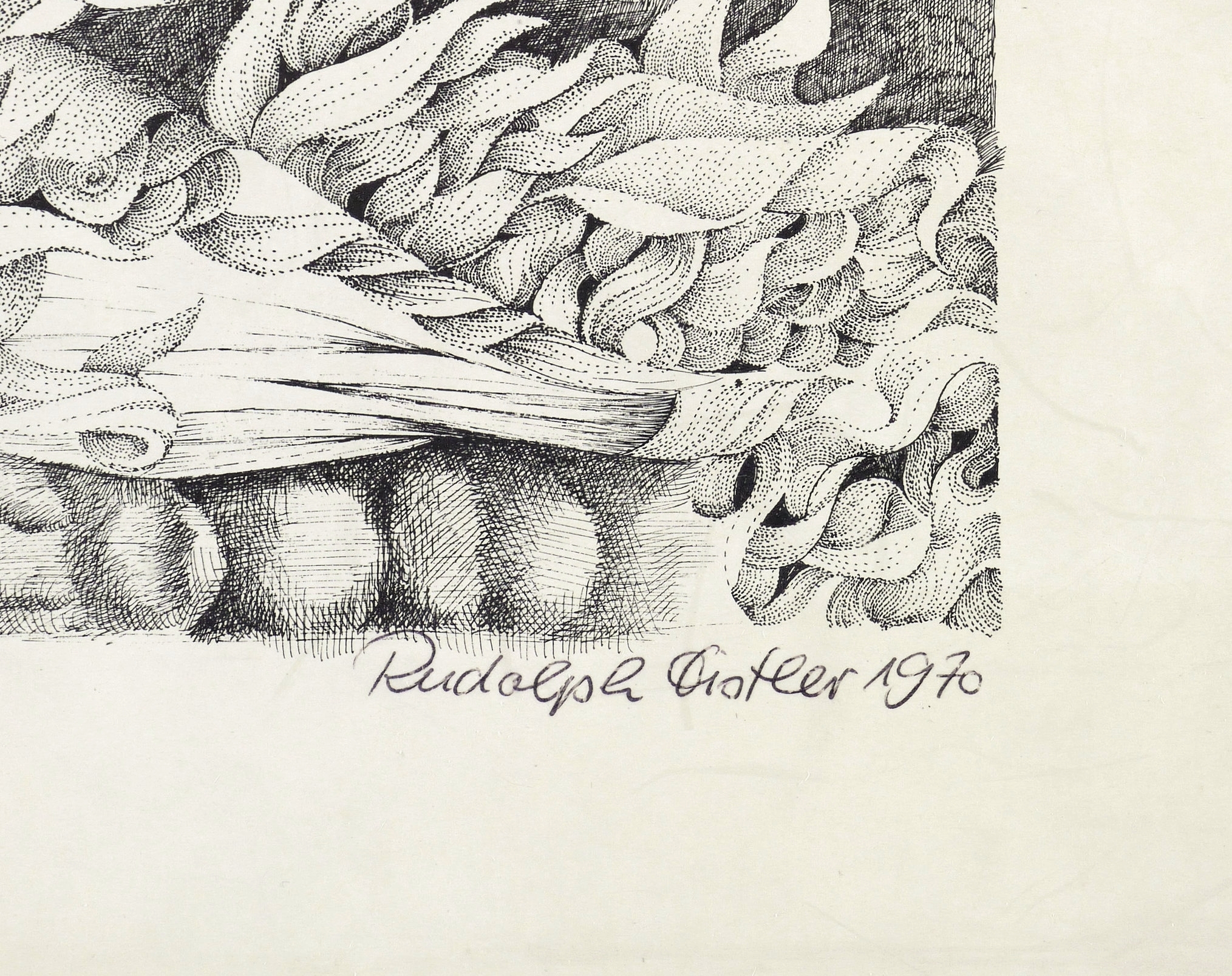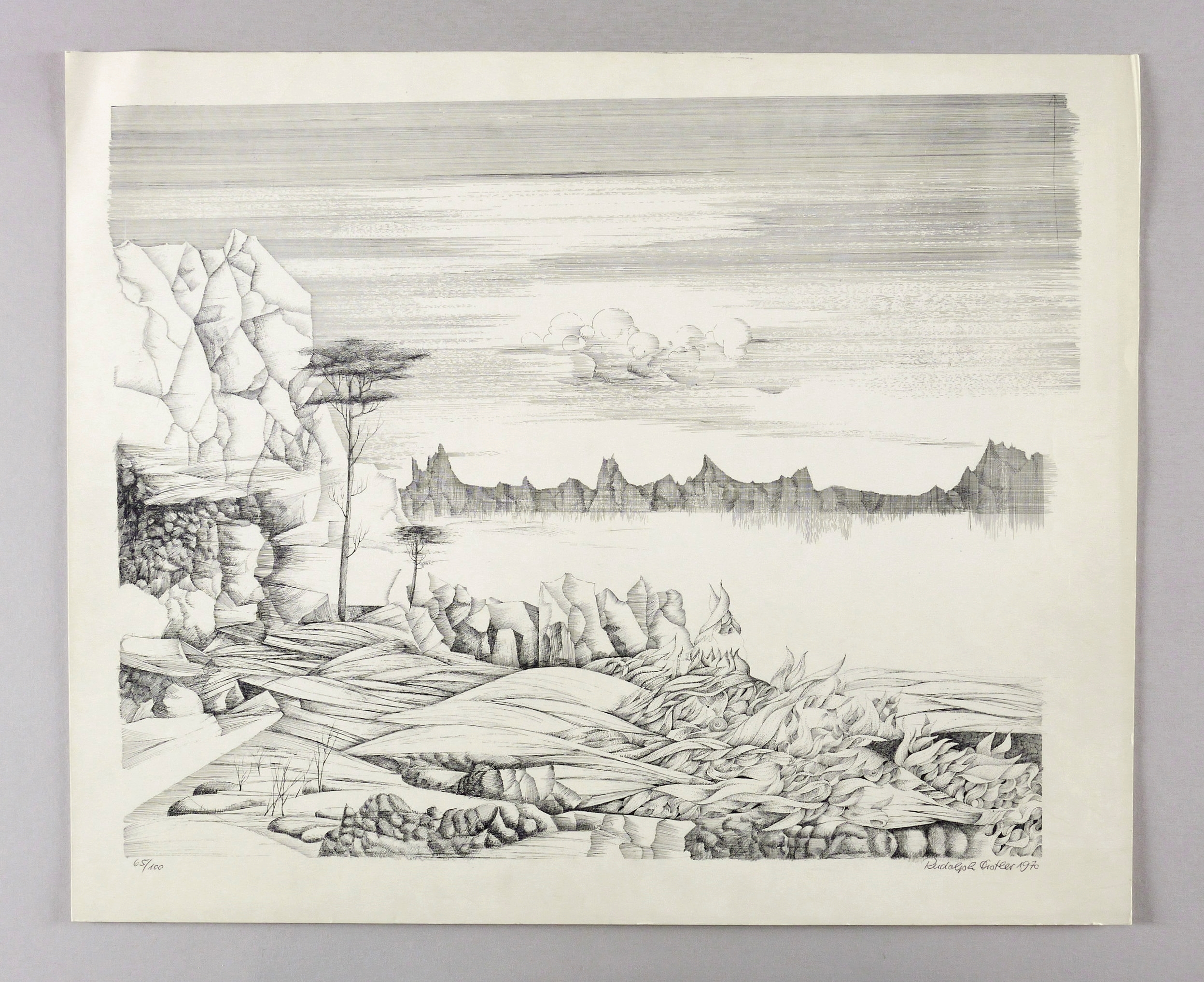 Rechts unten in Kugelschreiber signiert und datiert: ″Rudolph Distler 1970″. Links Auflagenbezeichnung: ″65/100″. – Leichte Lagerspuren. Guter Zustand.