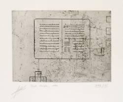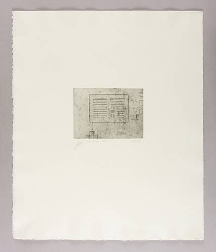 1994. Radierung / Strichätzung & Kaltnadel, in Schwarz, auf hartem hellgelbem Büttenkarton. – Originale Künstlergrafik, von Klaus Sobolewski. – Auflage Exemplar Nr. XXII/XL. – 12,8 x 17,8 cm (Darstellung / Platte), 59 x 49 cm (Blatt).