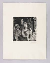 1982. Radierung / Strichätzung & Aquatinta, in Schwarz, auf hartem hellgelbem Velinkarton. – Originale Künstlergrafik, von Peter Herrmann. – Auflage Exemplar Nr. 62/100. – 20,2 x 20,4 cm (Darstellung), 48 x 38 cm (Blatt).