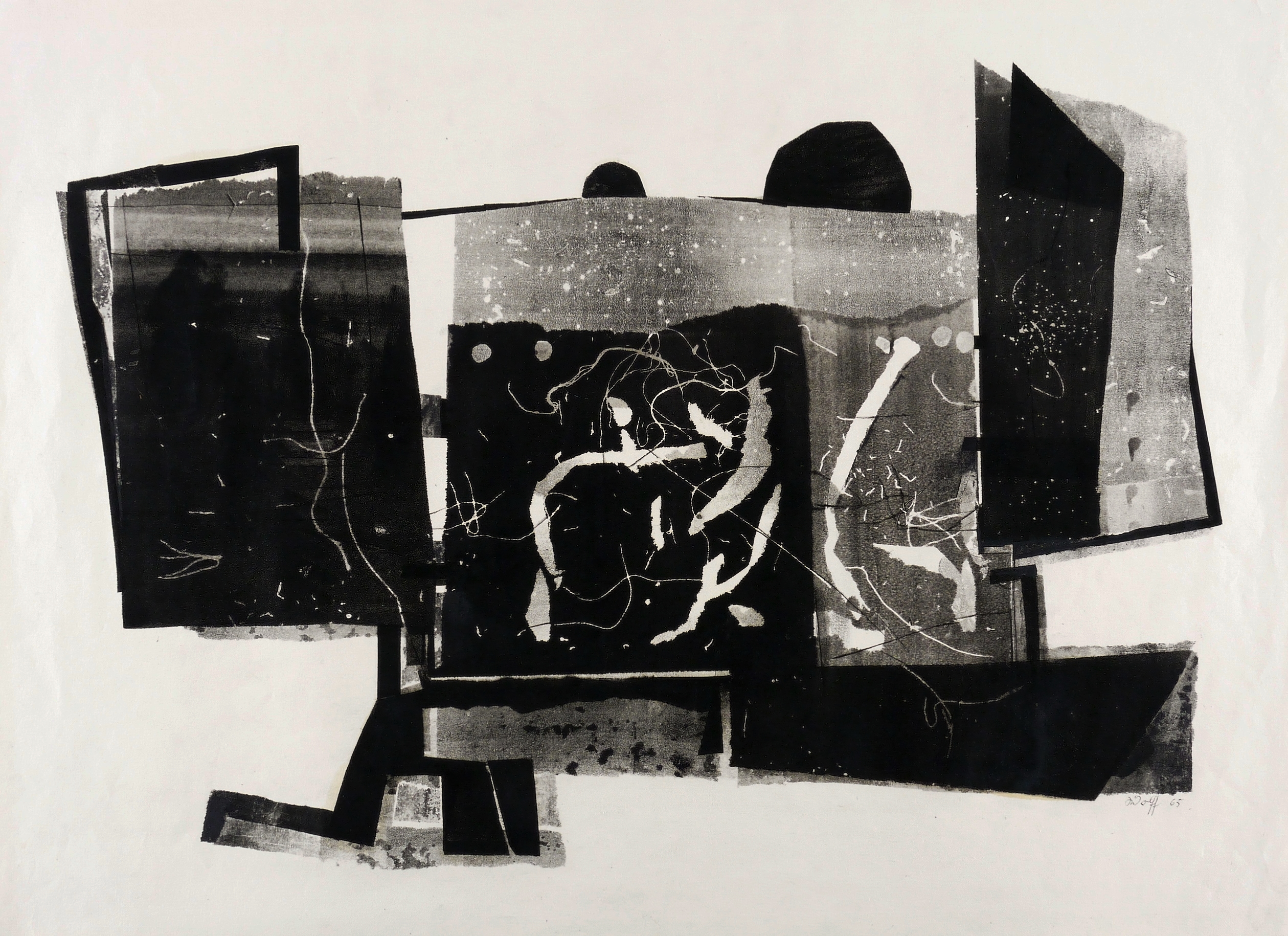 1965. Monotypie, in Schwarz, auf leichtem hellchamois Maschinenbütten. – Originale Künstlergrafik, von Willy Wolff. – Unikat. – 37,9 x 54,4 cm (Darstellung / Druckbild), 48 x 63 cm (Blatt).