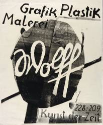 Rechts unten in schwarzer Feder signiert und datiert: ″Wolff 65″. – Unikates (!) originalgrafisches Künstlerplakat zur Personalausstellung ″Willy Wolff. Grafik, Plastik. Malerei″ vom 22.8.-20.9.1968 in der Genossenschaftsgalerie Kunst der Zeit in Dresden. – Nach einer Besichtigung durch Funktionäre, darunter Lea Grundig und der Direktor des stadtgeschichtlichen Museums Rudolf Förster, wurde die Ausstellung verboten. Trotzdem wurde die Ausstellung zum Erfolg, da die nur halbherzig gesperrte Ausstellung nun umso mehr Besucher anzog. – Papier durchgehend knickspurig. Drei hinterlegte winzige Randrisse. In den Blattecken Reißzwecklöchlein. Eine horizontale Falte weitgehend ausgelegen. Mäßig guter Zustand.