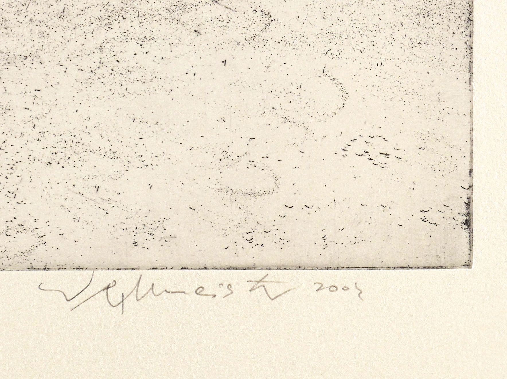 2003. Radierung / Aquatinta, Roulette, Strichätzung & Kaltnadel, in Schwarz, auf weichem hellgelbem Velin. – Von Wolfgang Werkmeister. – Probedruck 5 Exemplare. – 25,7 x 38,2 cm (Darstellung / Platte), 42 x 56 cm (Blatt).