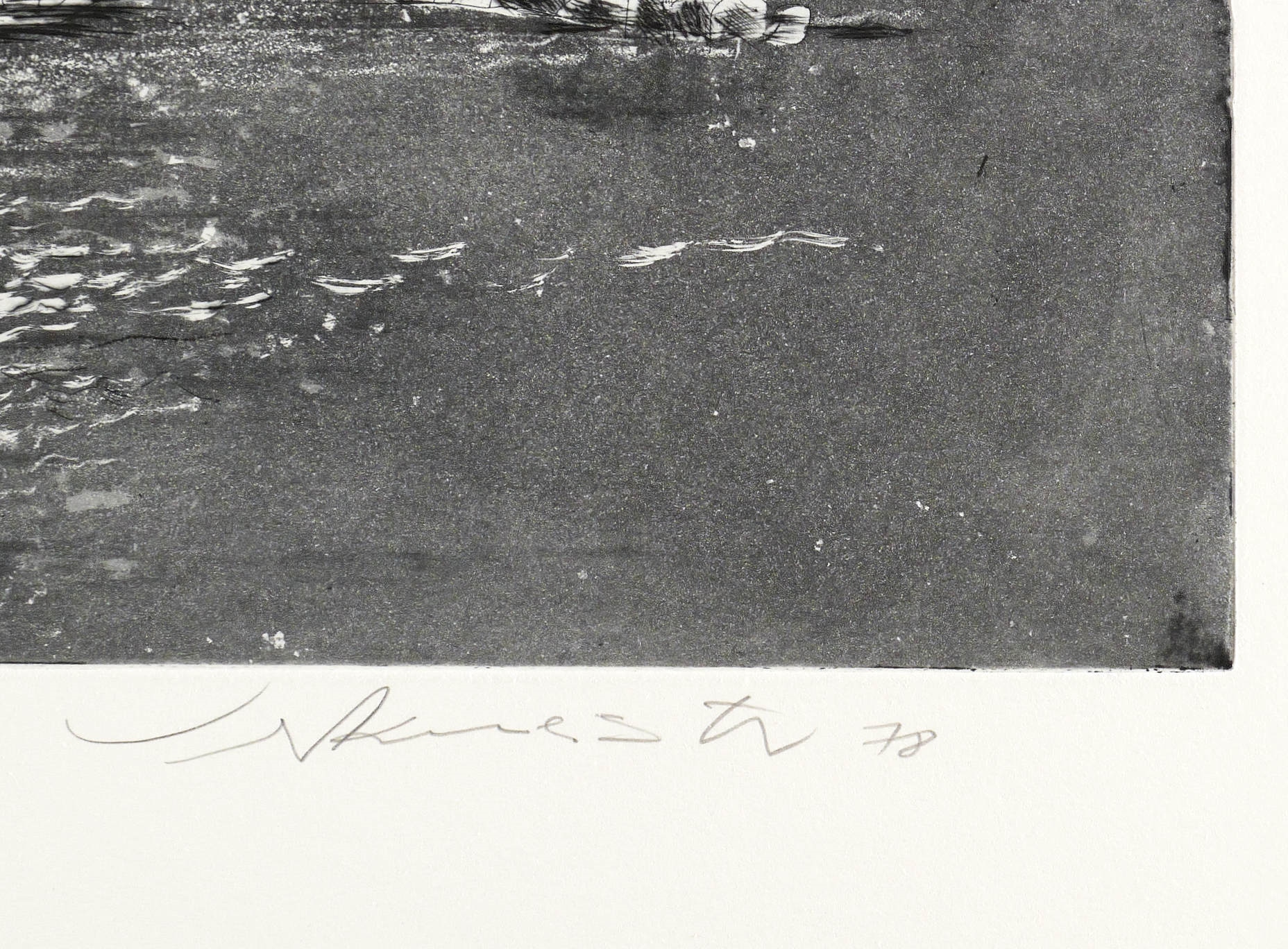 1978. Radierung / Aquatinta, Strichätzung & Kaltnadel, partiell poliert, in Schwarz, auf festem hellem Velin. – Von Wolfgang Werkmeister. – Auflage Exemplar Nr. 120/120. – 33,7 x 47,5 cm (Darstellung / Platte), 52 x 66 cm (Blatt).