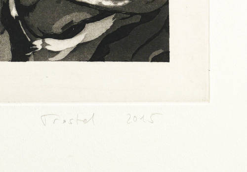 2015. Radierung / Aquatinta, in Schwarz, auf Hahnemühle-Bütten. – Originale Künstlergrafik, von Iris Trostel-Santander. – Auflage Exemplar Nr. 12/25. – 23,9 x 31,8 cm (Darstellung / Platte), 40 x 50 cm (Blatt).