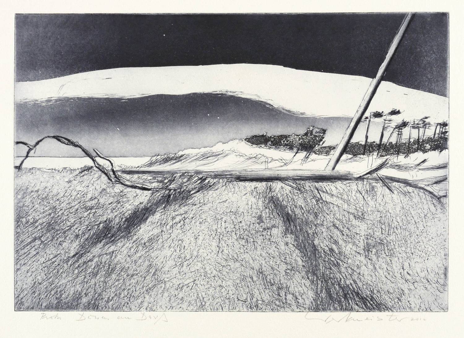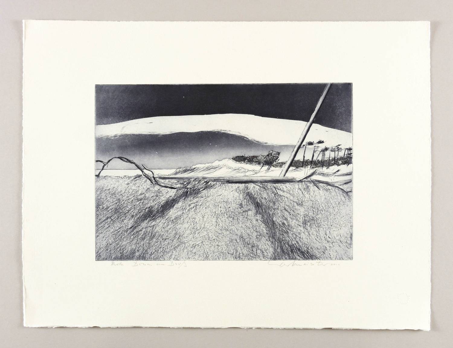 2010. Radierung / Aquatinta, Strichätzung & Kaltnadel, in Schwarz, auf hellchamois Hahnemühle-Bütten. – Von Wolfgang Werkmeister. – Probedruck. – 22,8 x 33,1 cm (Darstellung / Platte), 40 x 53 cm (Blatt).