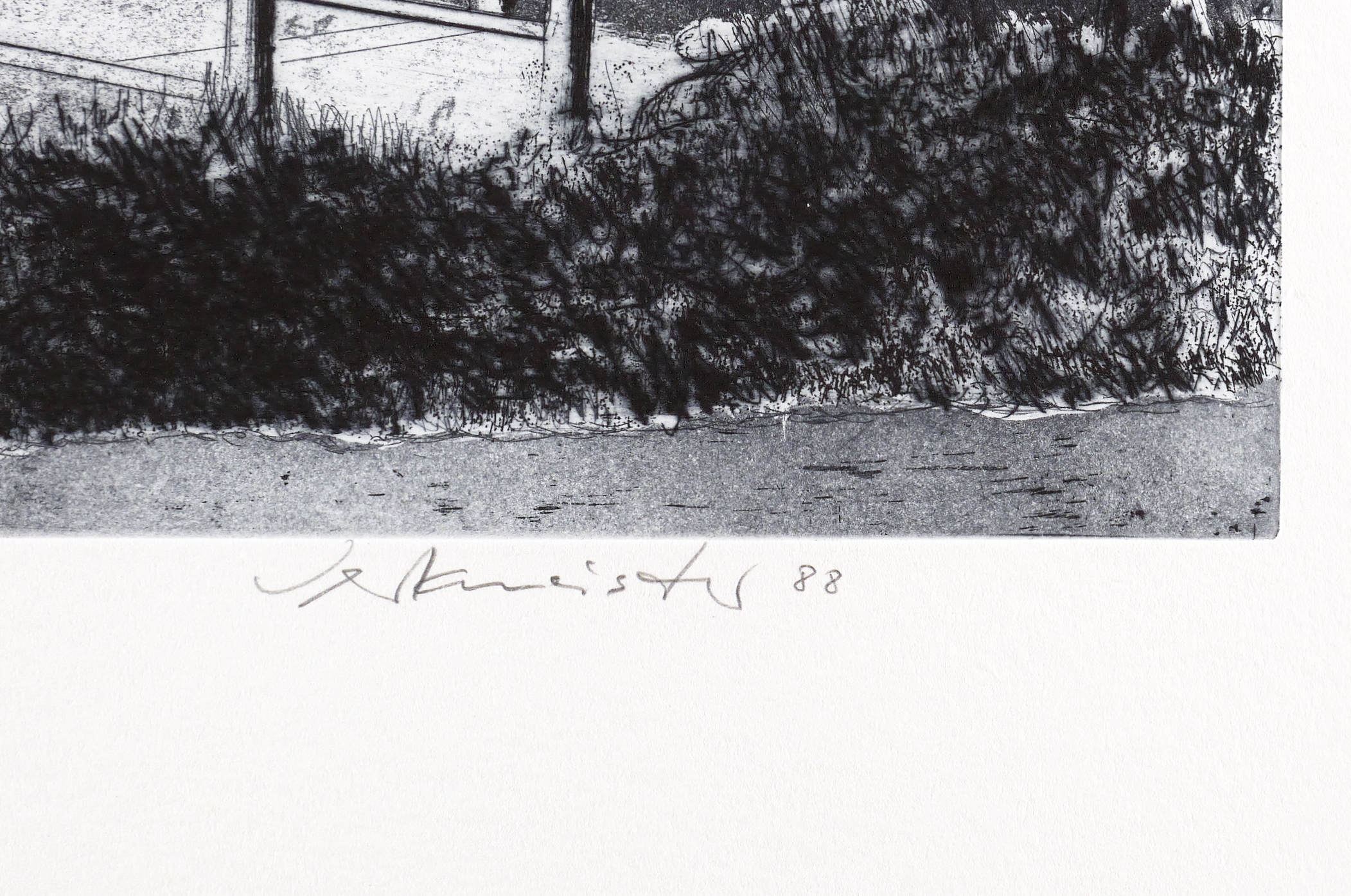 1988. Radierung / Aquatinta & Strichätzung, in Schwarz, auf schwerem Moulin-du-Gué-Bütten. – Von Wolfgang Werkmeister. – Auflage Exemplar Nr. 9/50. – 27,4 x 39,8 cm (Darstellung / Platte), 44 x 58 cm (Blatt).
