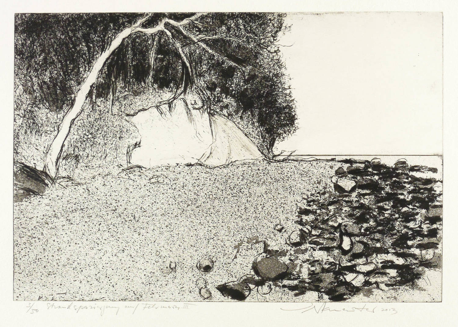 2013. Radierung / Aquatinta, Strichätzung & Kaltnadel, in Schwarz, auf hellchamois Hahnemühle-Bütten. – Von Wolfgang Werkmeister. – Auflage Exemplar Nr. 3/50. – 25,8 x 38,2 cm (Darstellung / Platte), 49 x 65 cm (Blatt).