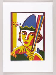 2010. Farblinolschnitt, in 3 Farben, auf weißem Velinkarton. – Originale Künstlergrafik, von Roland R. Berger. – Auflage Exemplar Nr. 14/15. – 29,7 x 21,0 cm (Darstellung), 43 x 31 cm (Blatt).