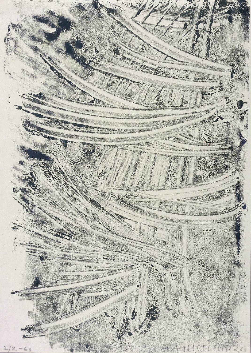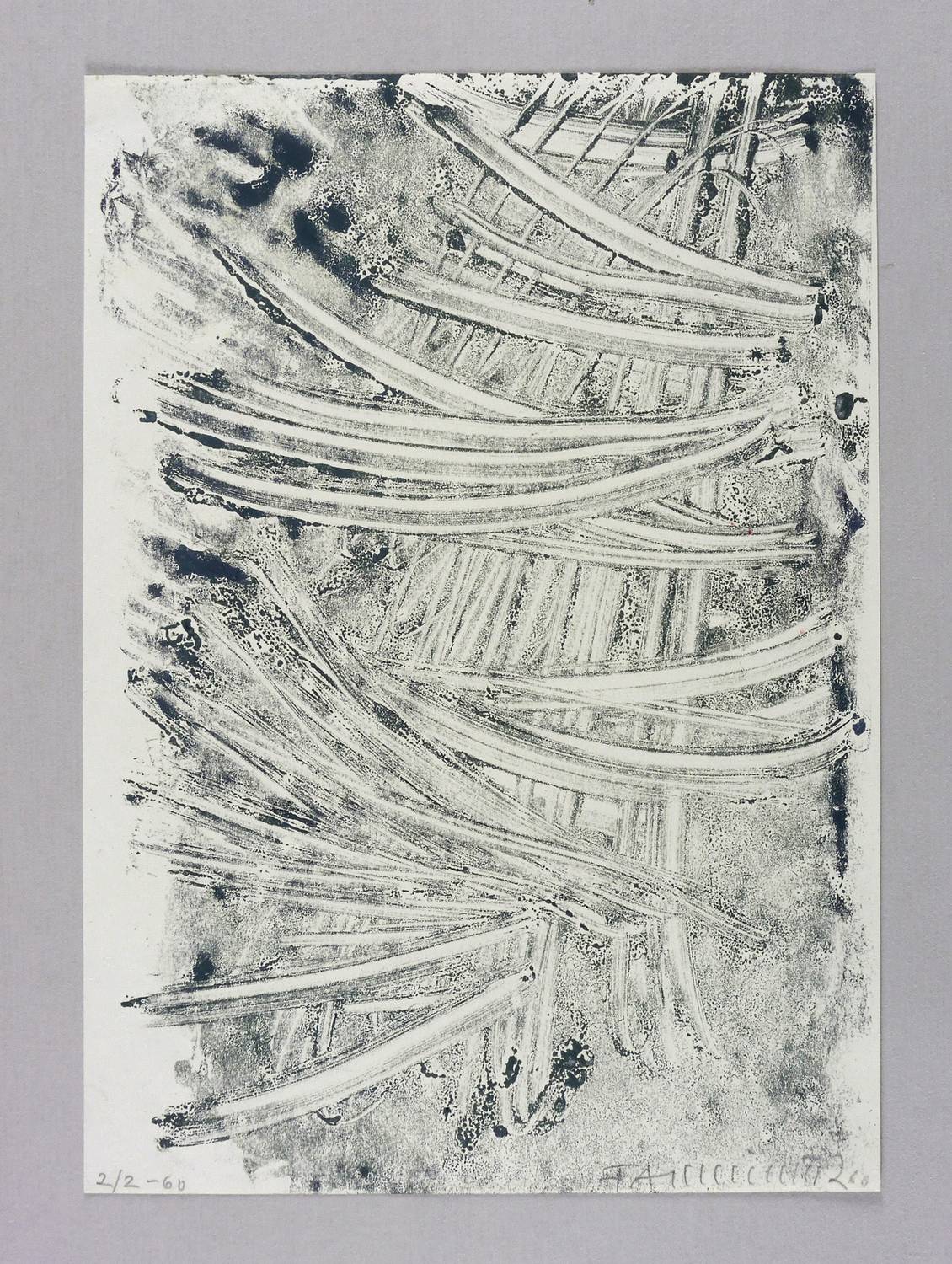 1960. Monotypie, in Schwarzgrün, auf leichtem hellchamois Maschinenpapier. – Originale Künstlergrafik, von Fathwinter. – Auflage Exemplar Nr. 2/2. – 29,7 x 21,1 cm (Darstellung / Blatt).