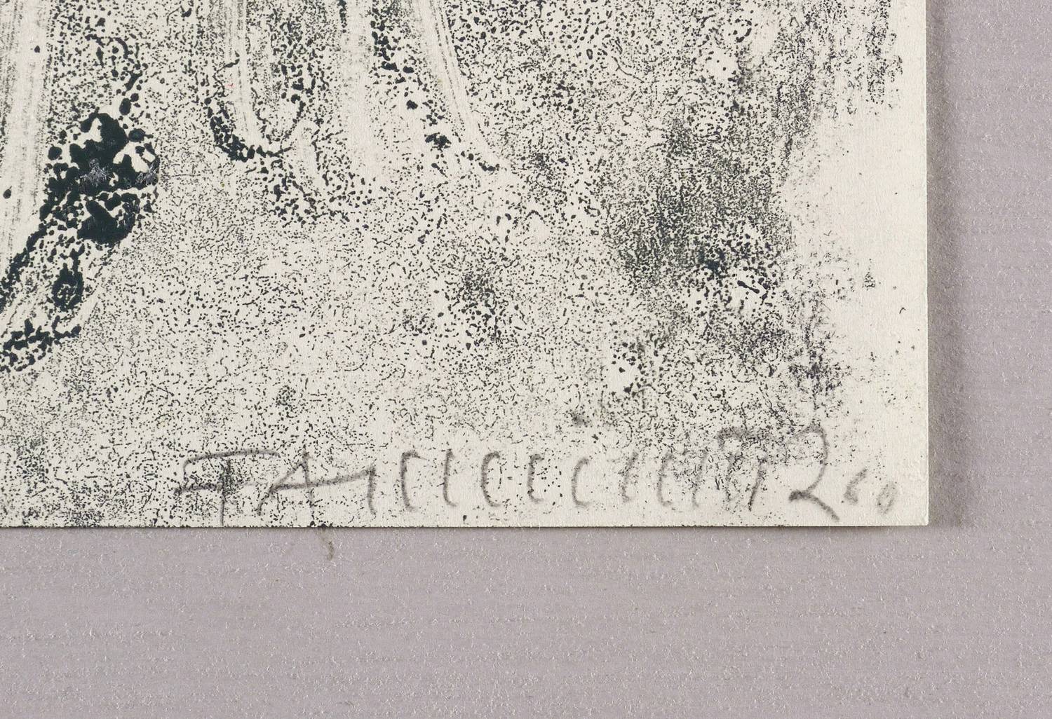 Rechts unten in Bleistift signiert und datiert. Links Auflagenbezeichnung und Jahr: ″2/2-60″. Verso weiter ausführlich bezeichnet: ″Pata-me / für Surrealisten 'Zwei graue im weissen Wald' / 2/2 / Monodruck 'Gris 16' 1960″. Verso Zoll-Stempel Bochum. – Sehr guter Zustand.