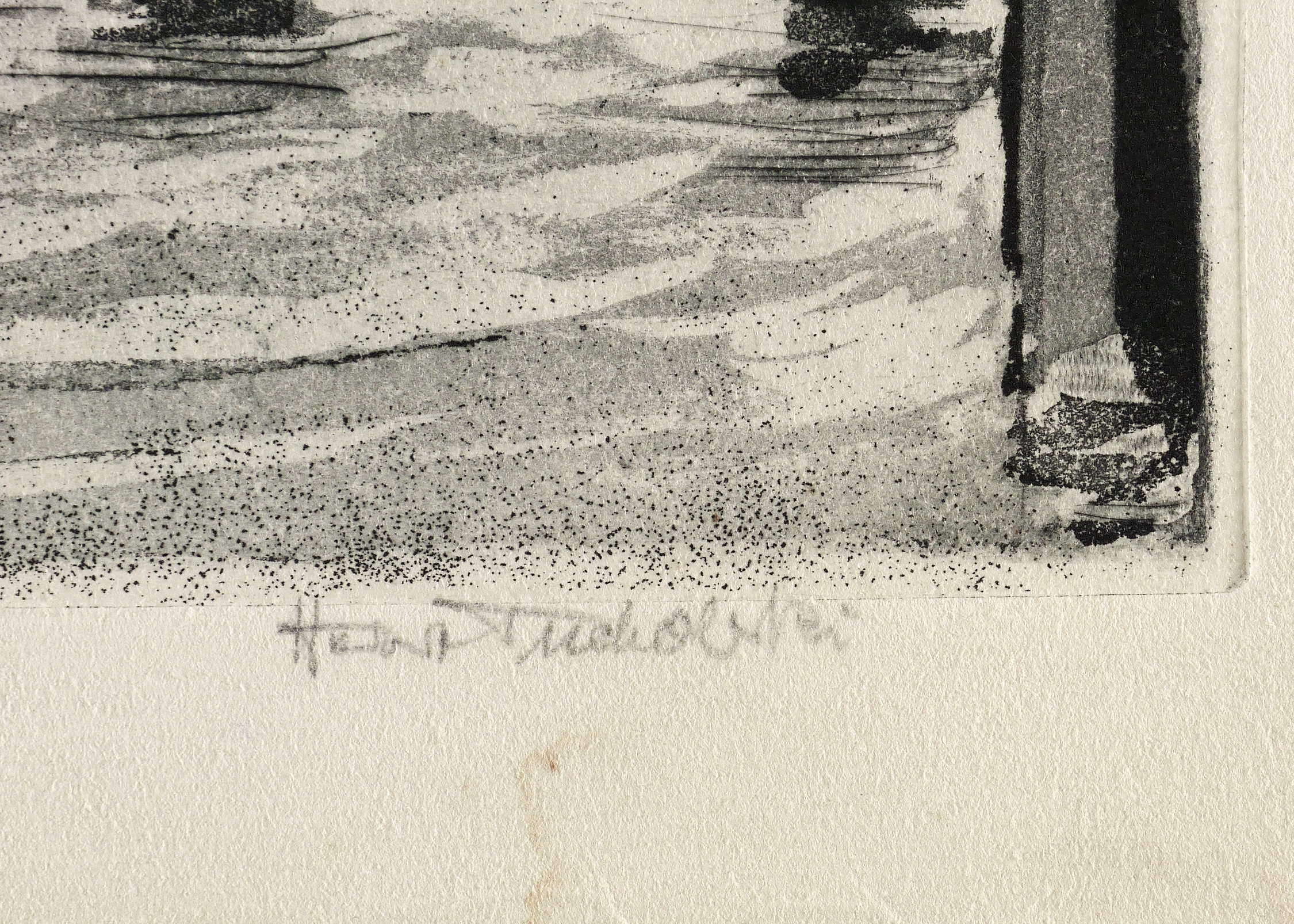 1928/1965. Radierung / Aquatinta & Strichätzung, partiell geschabt, in Schwarz, auf kräftigem hellchamois Velin. – Originale Künstlergrafik, von Herbert Tucholski. – 27,5 x 37,5 cm (Darstellung / Platte), 33 x 43 cm (Blatt).