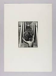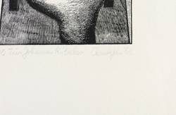 1981. Holzschnitt, in Schwarz, auf glattem hellchamois Karton. – Originale Künstlergrafik, von Christa Jahr. – Auflage Exemplar Nr. 30/35. – 18,3 x 13,7 cm (Darstellung / Druckbild), 48 x 34 cm (Blatt).
