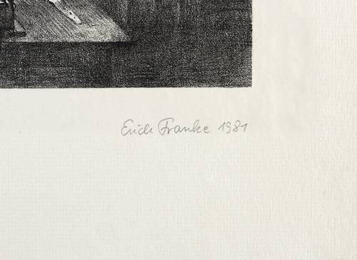 1981. Lithografie / Kreidelithografie, in Schwarz, auf hellchamois Maschinenbütten. – Originale Künstlergrafik, von Erich Franke. – Auflage Exemplar Nr. 30/35. – 33,0 x 24,2 cm (Darstellung / Druckbild), 48 x 35 cm (Blatt).