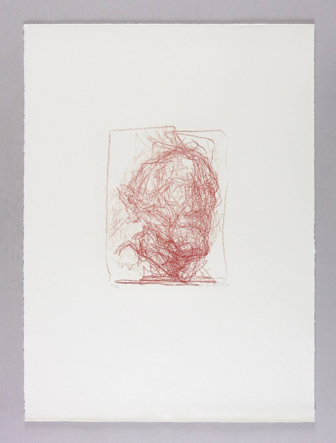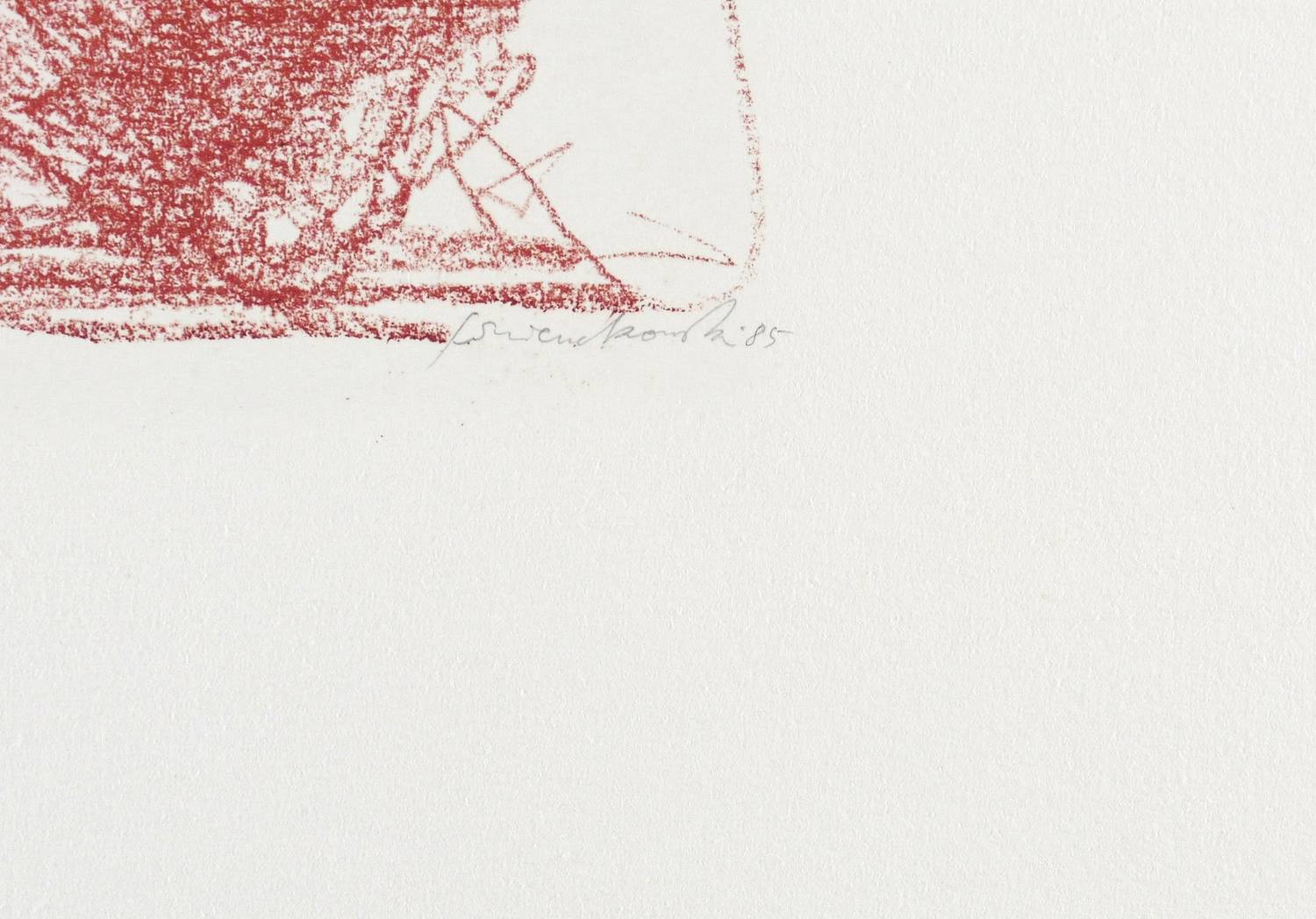 1985. Lithografie / Kreidelithografie, in Rötel, auf Büttenpapier. – Originale Künstlergrafik, von Gerhard Wienckowski. – Auflage Exemplar Nr. 73/100. – 22,0 x 16,5 cm (Darstellung / Druckbild), 54 x 40 cm (Blatt).