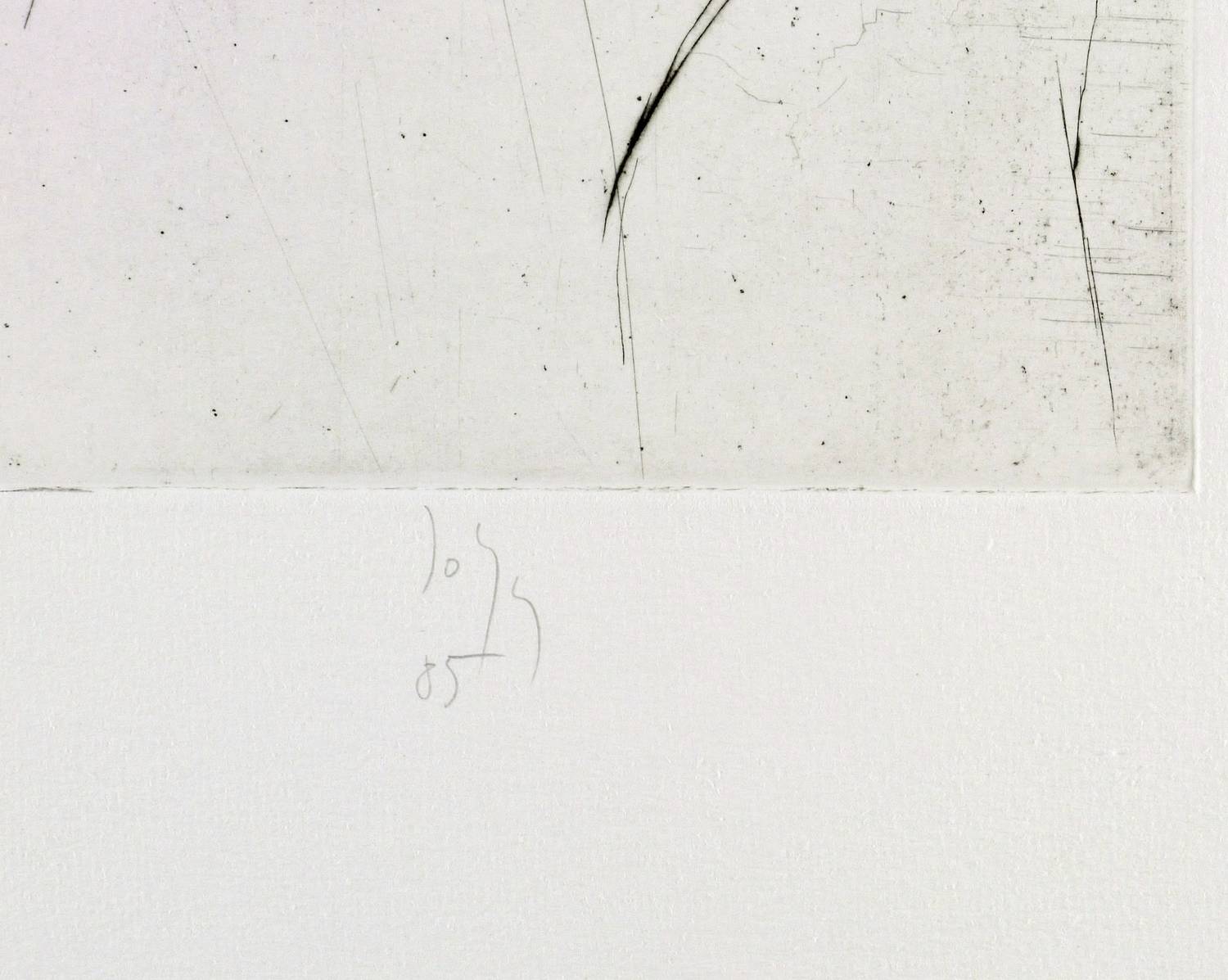 1985. Radierung / Kaltnadel, in Schwarz, mit leichtem Plattenton, auf schwerem hellchamois Hahnemühle. – Originale Künstlergrafik, von Joachim John. – Auflage Exemplar Nr. 73/100. – 26,2 x 22,3 cm (Darstellung / Platte), 51 x 40 cm (Blatt).
