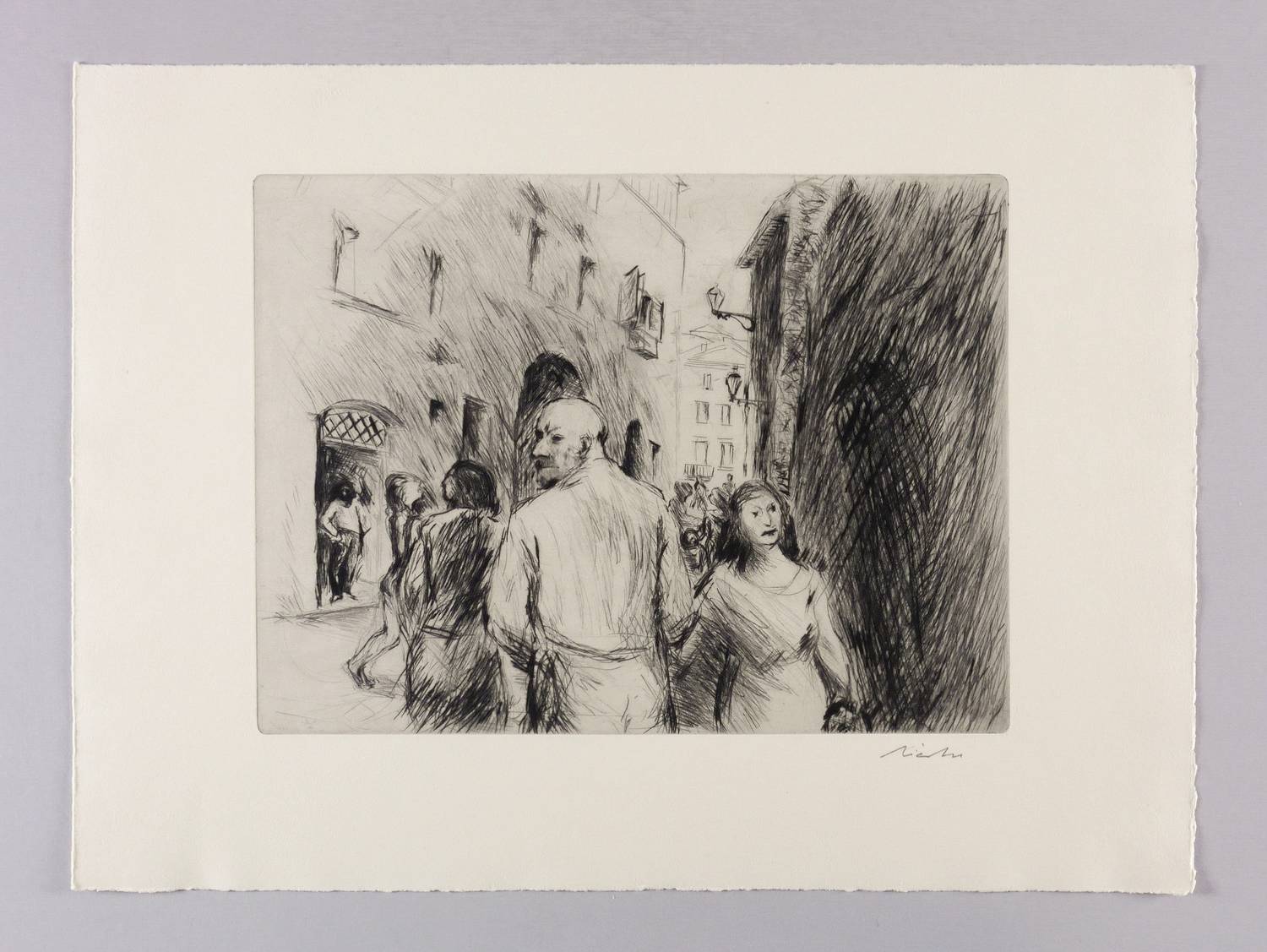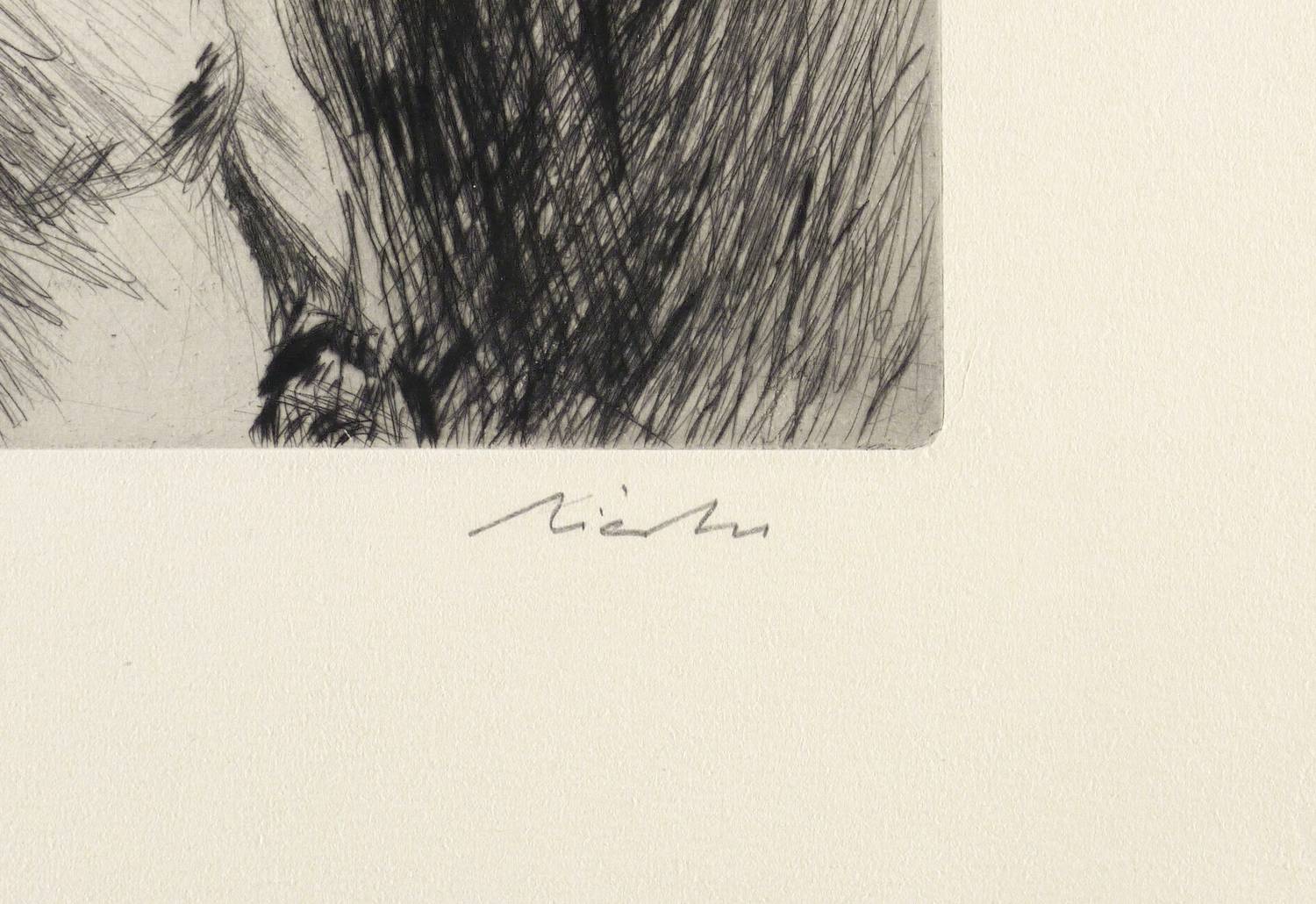 1981. Radierung / Kaltnadel, in Schwarz, auf chamois Hahnemühle. – Originale Künstlergrafik, von Rudolf Riester. – 26,7 x 36,0 cm (Darstellung / Platte), 40 x 54 cm (Blatt).