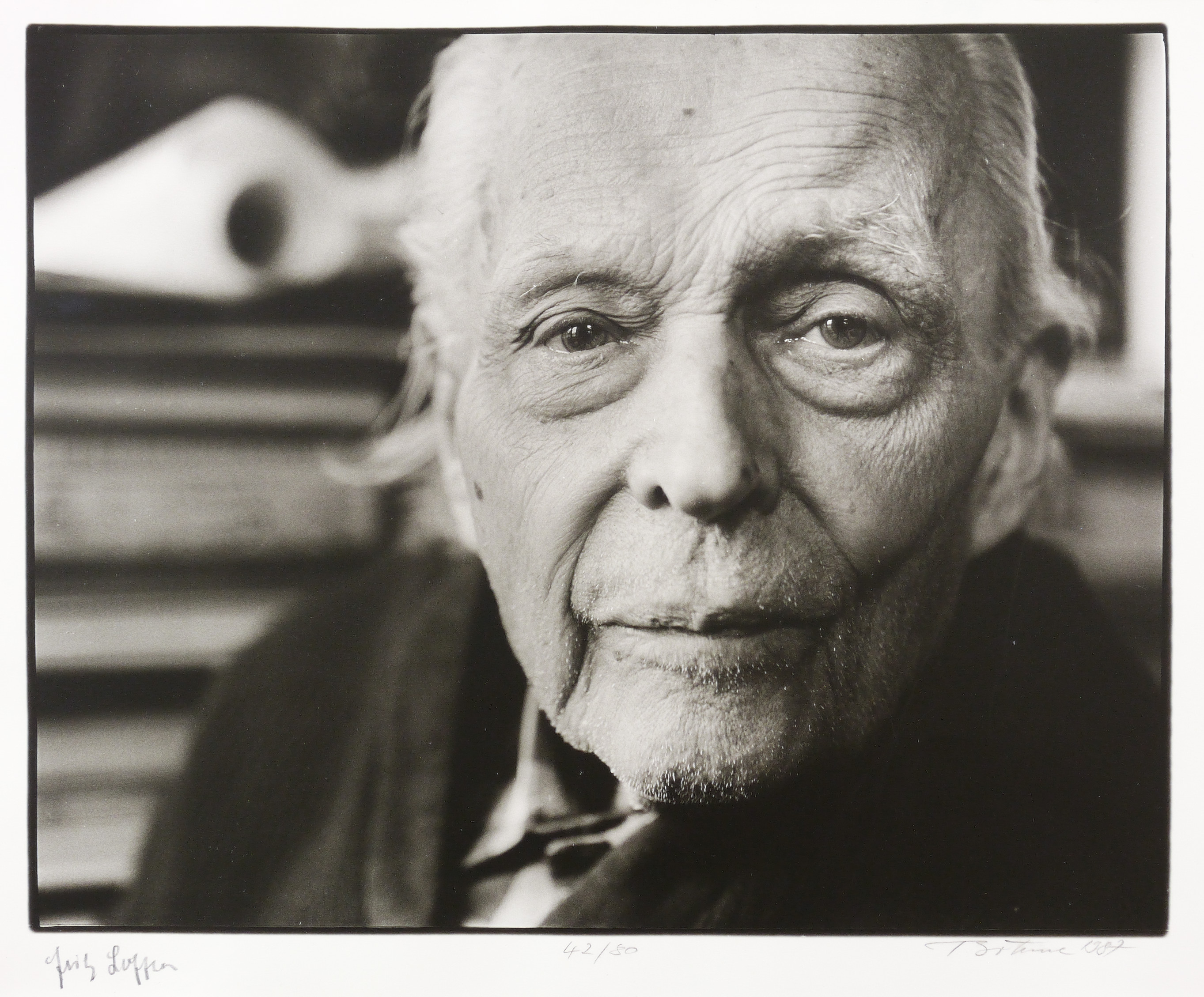 Rechts unten in Bleistift signiert und datiert: ″Böhme 1987″. Links Signatur des Porträtierten: ″Fritz Löffler″. Mittig Auflagenbezeichnung. Blattrücken ohne Stempel. Etikett im Pappumschlag mit ausführlicher maschinenschriftlicher Bezeichnung. – Exemplar aus der nummerierten und signierten Auflage zur Eröffnung der Ausstellung ″Fritz Löffler. Freund der Künstler. Die Schenkung Slava und Fritz Löffler″ im Kupferstichkabinett der Staatlichen Kunstsammlungen Dresden am 6. April 1988. – Tadellos. Sehr guter Zustand.