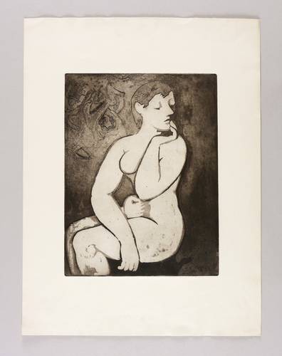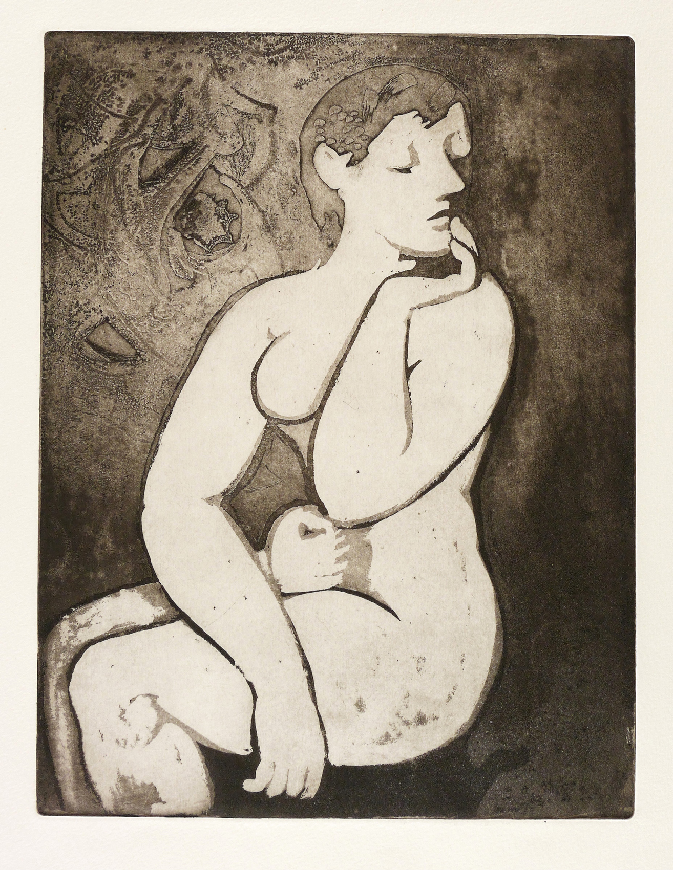 1950-1960. Radierung / Aquatinta, in Schwarz, auf hellgelbem Velinkarton. – Originale Künstlergrafik, von Wilhelm Lachnit. – 32,0 x 24,4 cm (Darstellung / Platte), 51 x 38 cm (Blatt).