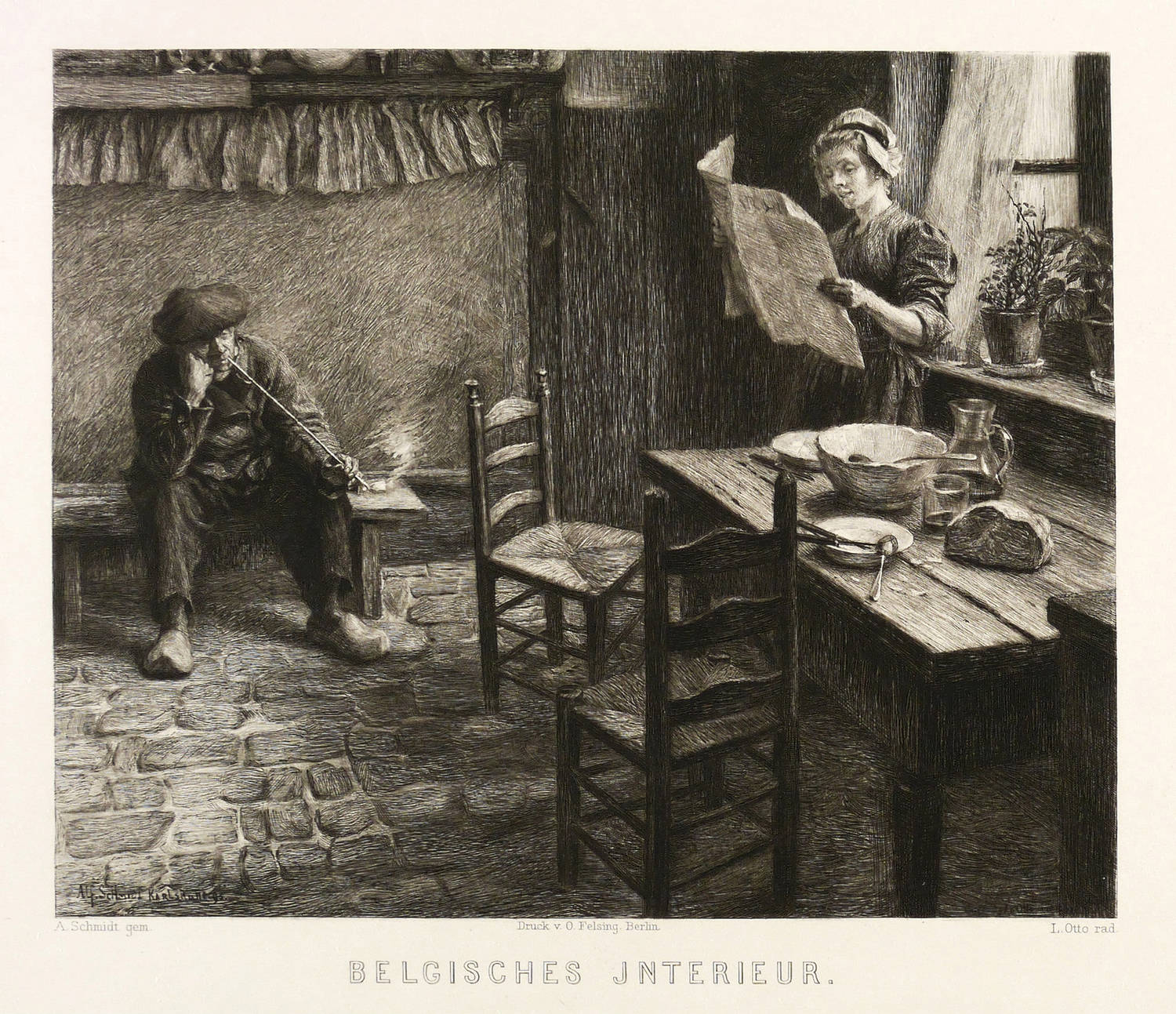 Aus: Vereinsgeschenk des Sächsischen Kunstvereins auf das Jahr .. (Dresden: Sächsischer Kunstverein 1897), Bd. 14. – In der Platte rechts unten gestochene Signatur: "L. Otto rad." Mittig Druckeradresse von O. Felsing, Berlin. Darunter Titel. In der Darstellung links unten Wiedergabe der Gemälde-Signatur: "Alf. Schmidt Karlsruhe. 95." – Originalrandiges unbeschnittenes Exemplar. Blattkanten gegilbt und umlaufend leicht bestoßen. Papier kaum merklich fleckig. Insgesamt guter Zustand.