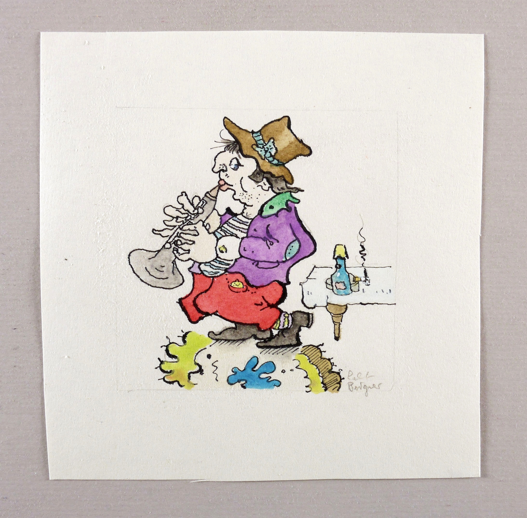 2021. Zeichnung / Tusche & Aquarell, auf hellchamois Velin. – Originale Künstlergrafik, von Ralf Bergner. – Unikat. – 9,1 x 8,9 cm (Darstellung), 15 x 15 cm (Blatt).