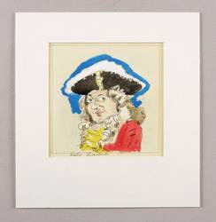 2021. Aquarell, über Bleistift, auf gelbem Velinkarton. – Originale Künstlergrafik, von Ralf Bergner. – Unikat. – 9,4 x 9,2 cm (Darstellung), 14 x 14 cm (Blatt), 17 x 16 cm (Passepartout).