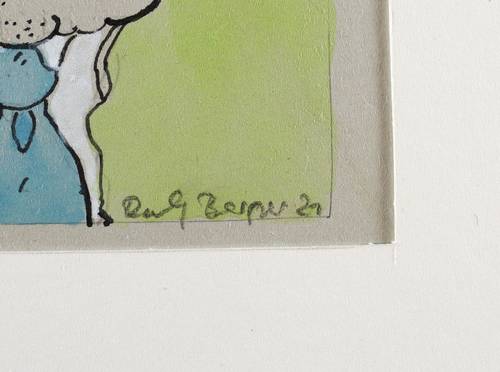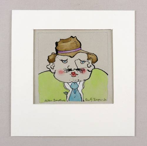 2021. Zeichnung / Tusche & Aquarell, auf hellgrauem Karton. – Originale Künstlergrafik, von Ralf Bergner. – Unikat. – 9,4 x 9,3 cm (Darstellung), 13 x 13 cm (Blatt), 17 x 17 cm (Passepartout).