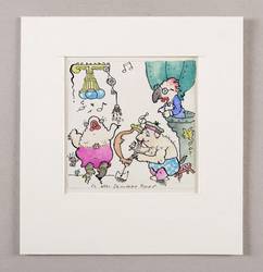2021. Zeichnung / Tusche & Aquarell, auf hellchamois Karton. – Originale Künstlergrafik, von Ralf Bergner. – Unikat. – 9,2 x 9,3 cm (Darstellung), 14 x 14 cm (Blatt), 18 x 16 cm (Passepartout).