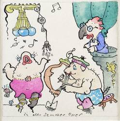 Unterhalb in Bleistift betitelt: ″In der Semper Oper″. Verso in Bleistift bezeichnet: ″Ralf Bergner″. – Vom Künstler hinter Passepartout montiert. Sehr guter Zustand.