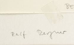 Ralf Bergner (*1950 Breitenbach bei Zeitz, lebt und arbeitet in Berlin). Deutscher Zeichner und Grafiker. 1967-70 Lehre als Elektromonteur mit Abitur. 1976/77 Praktikum am Institut für Architekturemail Thale. 1977-82 Studium an der Hochschule für industrielle Formgestaltung Halle, Burg Giebichenstein, Fachrichtung Malerei/Grafik, bei Frank Ruddigkeit und Willi Sitte. 1982 Diplom. 1983-85 Zusatzstudium an der Hochschule für Grafik und Buchkunst (HGB) Leipzig bei Karl-Georg Hirsch. Seit 1985 freischaffend tätig als Maler und Grafiker, zunächst in Halle (Saale), jetzt in Berlin.