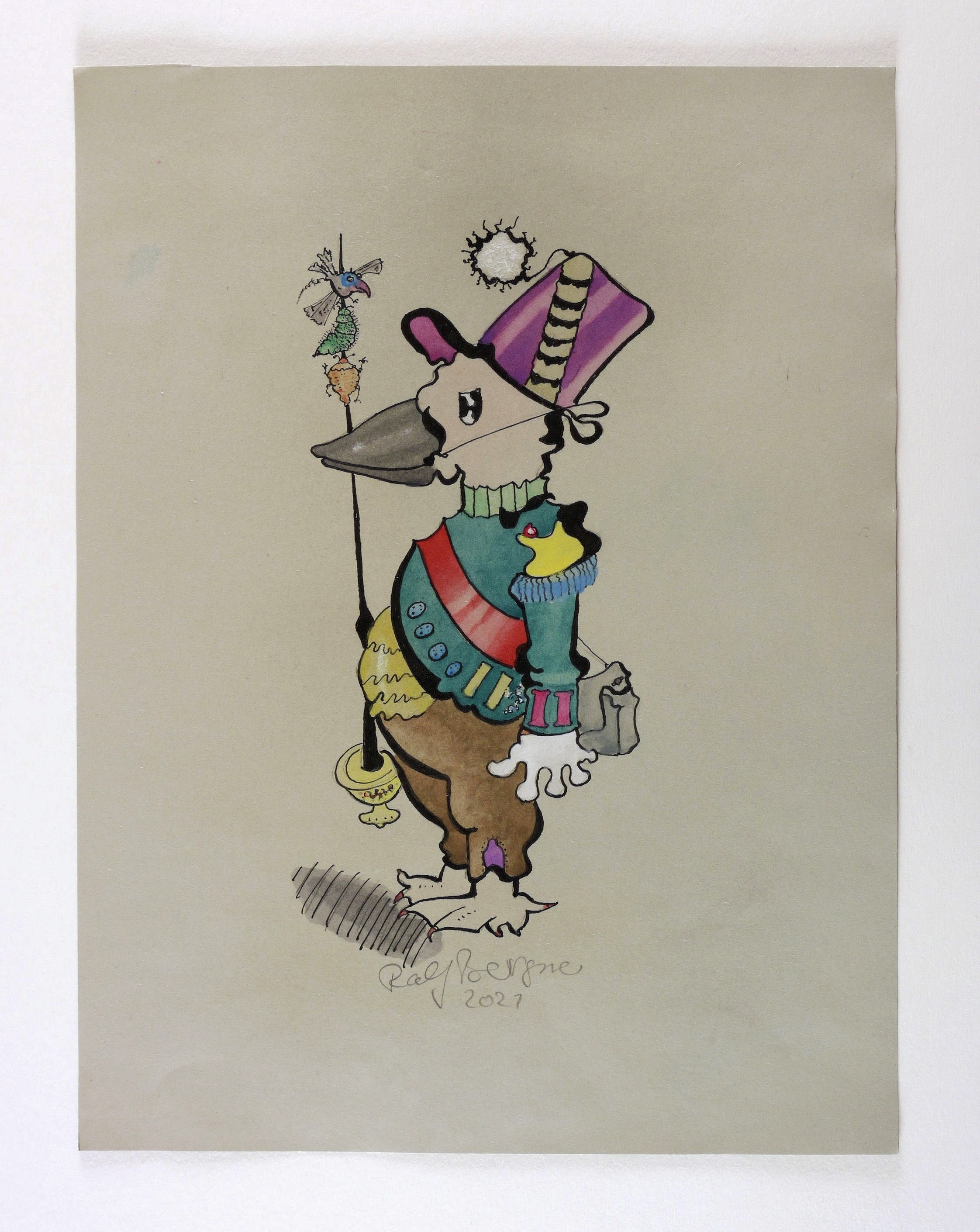 2021. Mischtechnik / Aquarell & Tusche, auf hellgrauem Velin. – Originale Künstlergrafik, von Ralf Bergner. – Unikat. – 26,5 x 12,9 cm (Darstellung), 39 x 29 cm (Blatt).