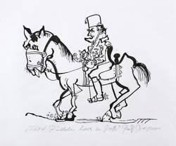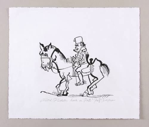 Unterhalb in Bleistift betitelt und signiert: ″Fürst Pückler hoch zu Roß / Ralf Bergner″. – Minimale Lagerspuren. Guter Zustand.