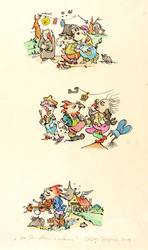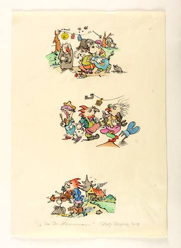 2018. Mischtechnik / Aquarell & Tusche, über Bleistift, auf leichtem hellgelbem Velin. – Originale Künstlergrafik, von Ralf Bergner. – Unikat. – 41,0 x 20,0 cm (Darstellung), 48 x 33 cm (Blatt).