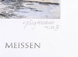 Ulrich Jungermann (*1953 Stralsund - lebt und arbeitet in Meißen). Deutscher Maler und Grafiker. 1970-74 Lehre an der Staatlichen Porzellanmanufaktur Meissen. 1974-76 Tätigkeit als Porzellanmaler. 1976-81 Studium an der Hochschule für Bildende Künste Dresden. 1981 Diplom als Maler und Grafiker, seitdem freiberuflich tätig. 2007 Kunstpreis der Johannis-Freimaurerloge “Zu den drei Schwertern und grünenden Raute", Dresden.
