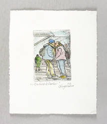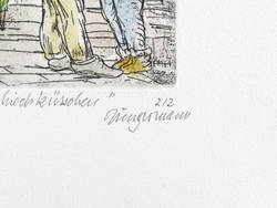 2020. Radierung / Strichätzung, in Schwarz, aquarelliert, auf hellchamoise Velin. – Originale Künstlergrafik, von Ulrich Jungermann. – Auflage Exemplar Nr. 2/2. – 10,0 x 7,1 cm (Darstellung / Platte), 20 x 17 cm (Blatt).