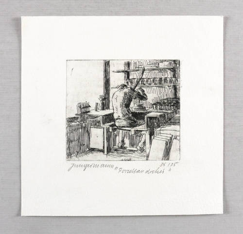 1982. Radierung / Strichätzung, in Schwarz, auf hellchamois Velin. – Originale Künstlergrafik, von Ulrich Jungermann. – Auflage Exemplar Nr. 35/35. – 7,6 x 8,6 cm (Darstellung / Platte), 15 x 16 cm (Blatt).