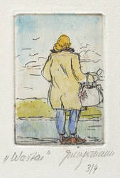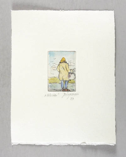 2020. Radierung / Strichätzung, in Schwarz, aquarelliert, auf hellchamois Bütten. – Originale Künstlergrafik, von Ulrich Jungermann. – Auflage Exemplar Nr. 1/3. – 7,3 x 4,9 cm (Darstellung / Platte), 24 x 19 cm (Blatt).