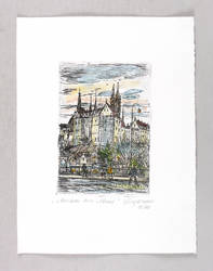2014. Radierung / Kaltnadel, in Schwarz, aquarelliert, auf weißem Velin. – Originale Künstlergrafik, von Ulrich Jungermann. – Auflage Exemplar Nr. 15/20. – 15,0 x 10,4 cm (Darstellung / Platte), 27 x 20 cm (Blatt).