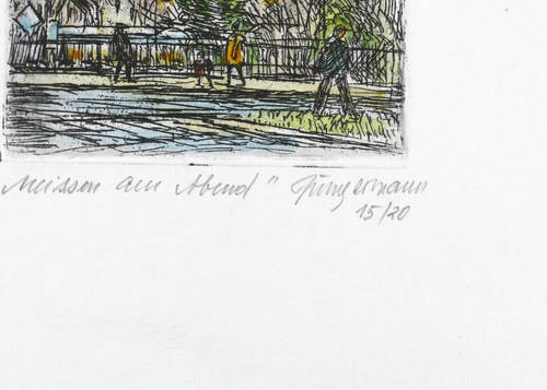 Rechts unten in Bleistift signiert: ″Jungermann″. Dazu Auflagenbezeichnung: ″15/20″. Links betitelt: ″Meissen am Abend″. – Sehr guter Zustand.