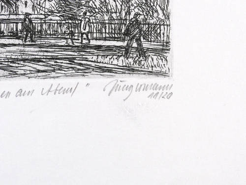 Rechts unten in Bleistift signiert: ″Jungermann″. Dazu Auflagenbezeichnung: ″11/20″. Links betitelt: ″Meissen am Abend″. – Sehr guter Zustand.