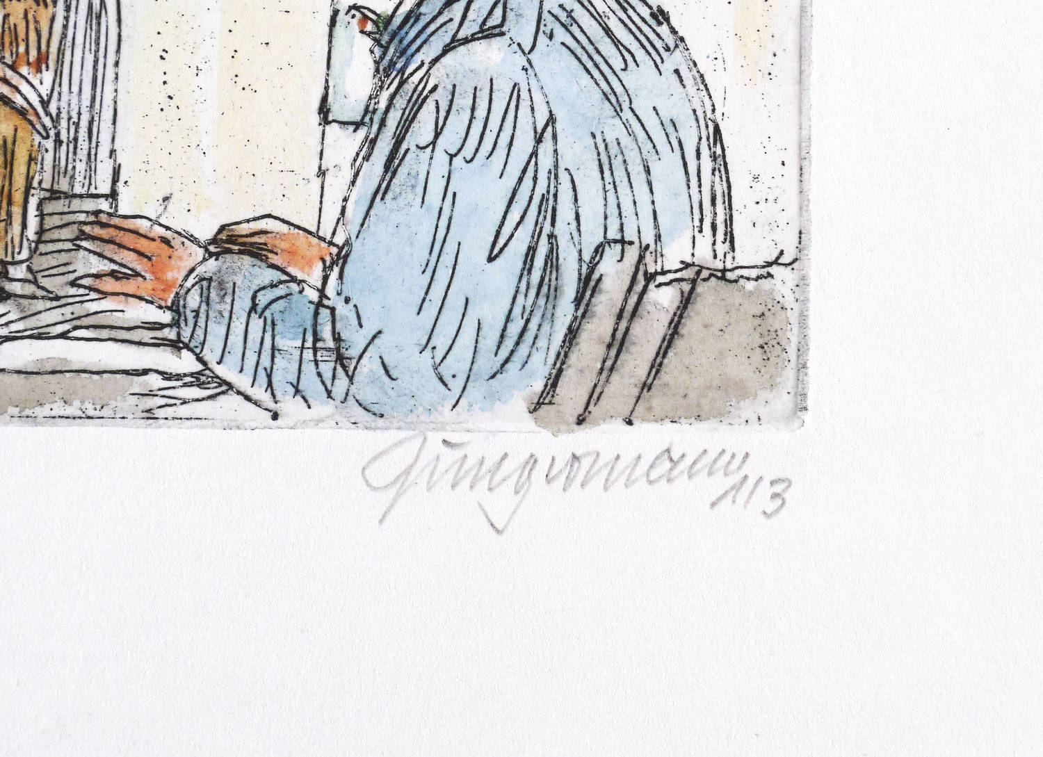 2016. Radierung / Strichätzung, in Schwarz, aquarelliert, auf weißem Velin. – Originale Künstlergrafik, von Ulrich Jungermann. – Auflage Exemplar Nr. 1/3. – 11,8 x 15,0 cm (Darstellung / Platte), 20 x 24 cm (Blatt).