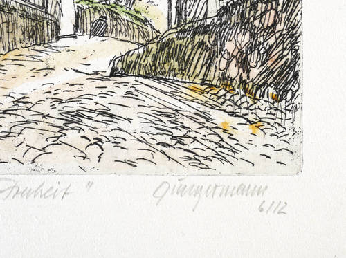 Rechts unten in Bleistift signiert: ″Jungermann″. Dazu Auflagenbezeichnung: ″6/12″. Links betitelt: ″Meissen - Freiheit″. – Sehr guter Zustand.