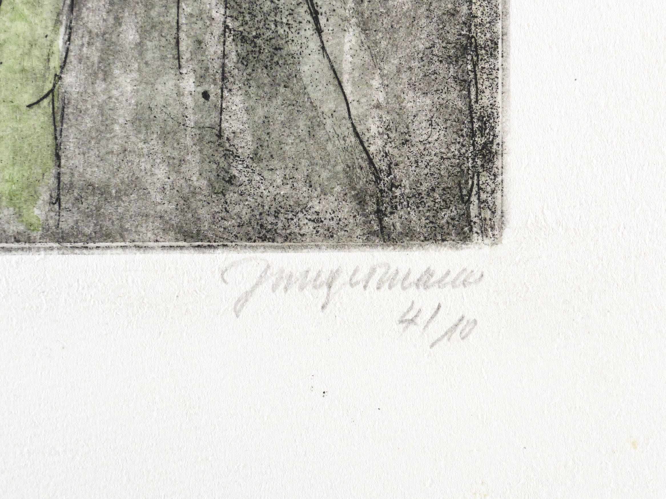 2015. Radierung / Strichätzung, in Schwarz, aquarelliert, auf hellchamois Velin. – Originale Künstlergrafik, von Ulrich Jungermann. – Auflage Exemplar Nr. 4/10. – 19,8 x 17,8 cm (Darstellung / Platte), 29 x 25 cm (Blatt).