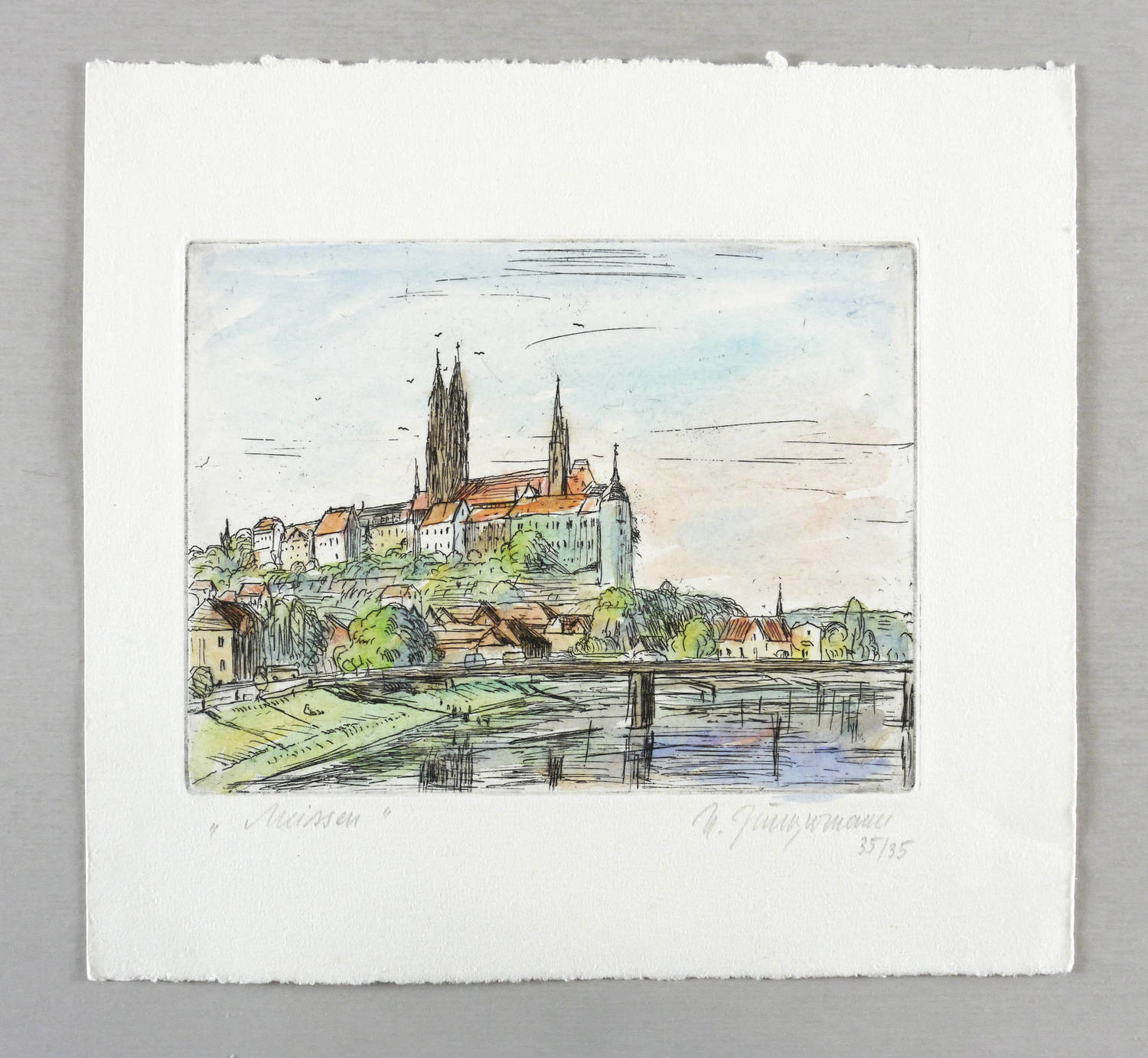 Rechts unten in Bleistift signiert: ″Jungermann″. Dazu Auflagenbezeichnung: ″35/35″. Links betitelt: ″Meissen″. – Sehr guter Zustand.