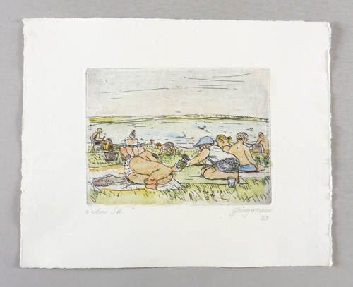 2019. Radierung / Strichätzung, in Schwarz, aquarelliert, auf hellchamois Hahnemühle. – Originale Künstlergrafik, von Ulrich Jungermann. – Auflage Exemplar Nr. 3/3. – 14,8 x 19,8 cm (Darstellung / Platte), 27 x 33 cm (Blatt).