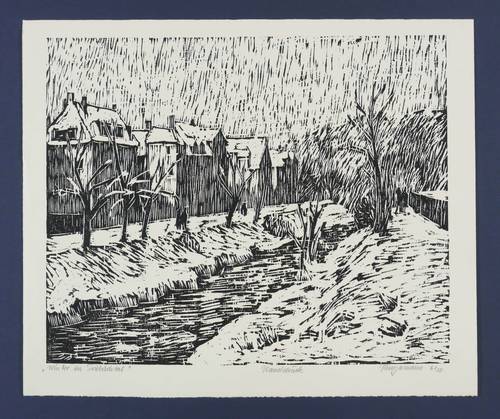 Rechts unter dem Druckstock signiert. Links dazu betitelt. Mittig bezeichnet ″Handdruck″. – Sehr gut erhaltenes Exemplar.
