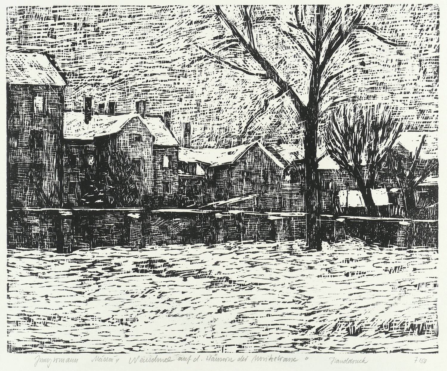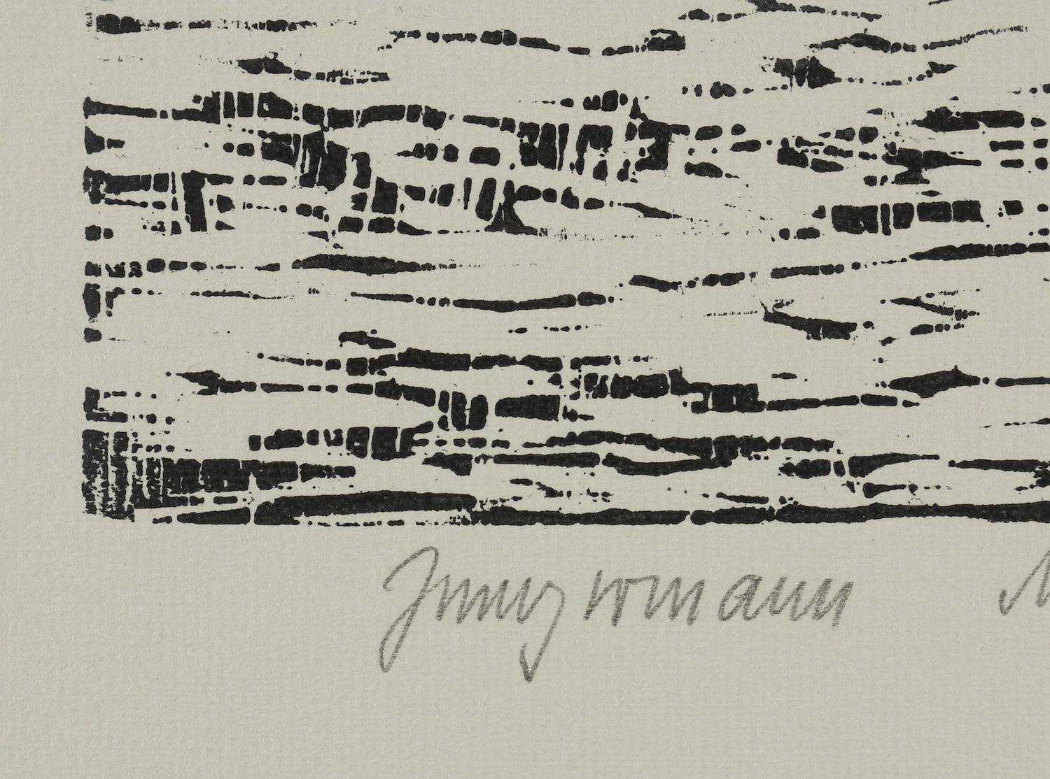 1986. Holzschnitt, in Schwarz, auf rauem hellchamois Bütten. – Originale Künstlergrafik, von Ulrich Jungermann. – Auflage Exemplar Nr. 7/50. – 40,0 x 49,5 cm (Darstellung / Druckstock), 52 x 62 cm (Blatt).