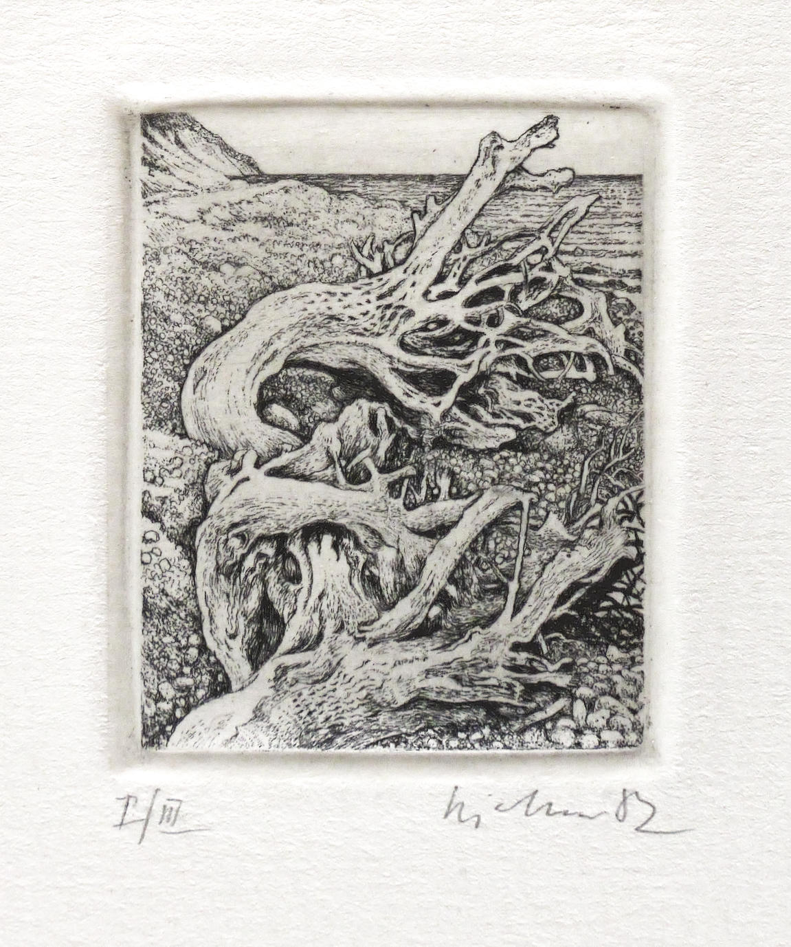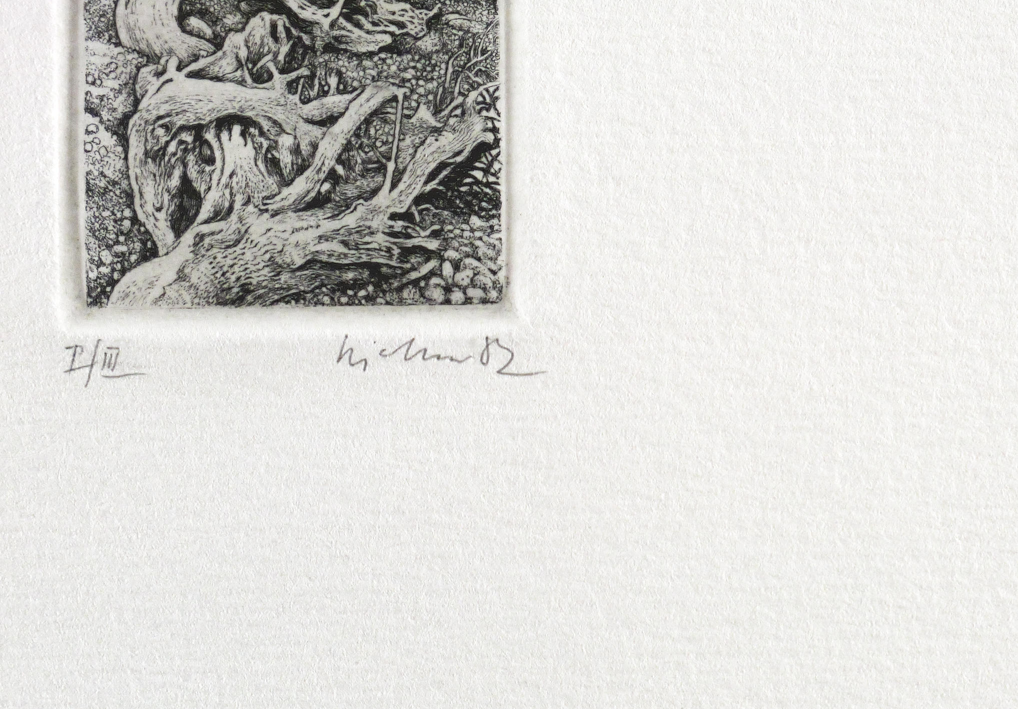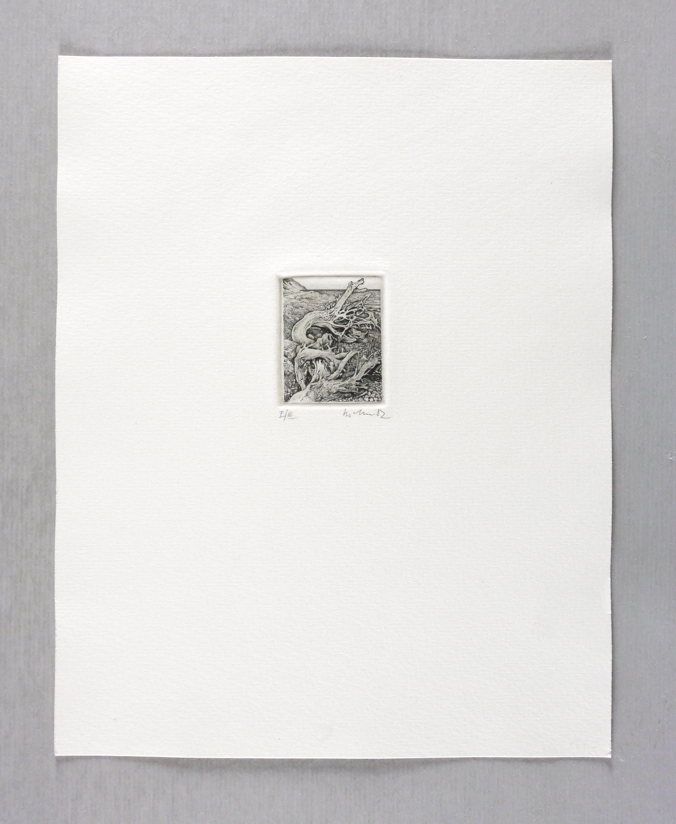 1982. Radierung / Strichätzung, in Schwarz, auf hellchamois Weißenborn. – Originale Künstlergrafik, von Gerenot Richter. – Auflage Exemplar Nr. I/III. – 5,0 x 4,0 cm (Darstellung / Platte), 25 x 20 cm (Blatt).
