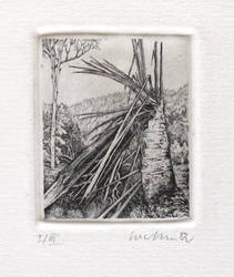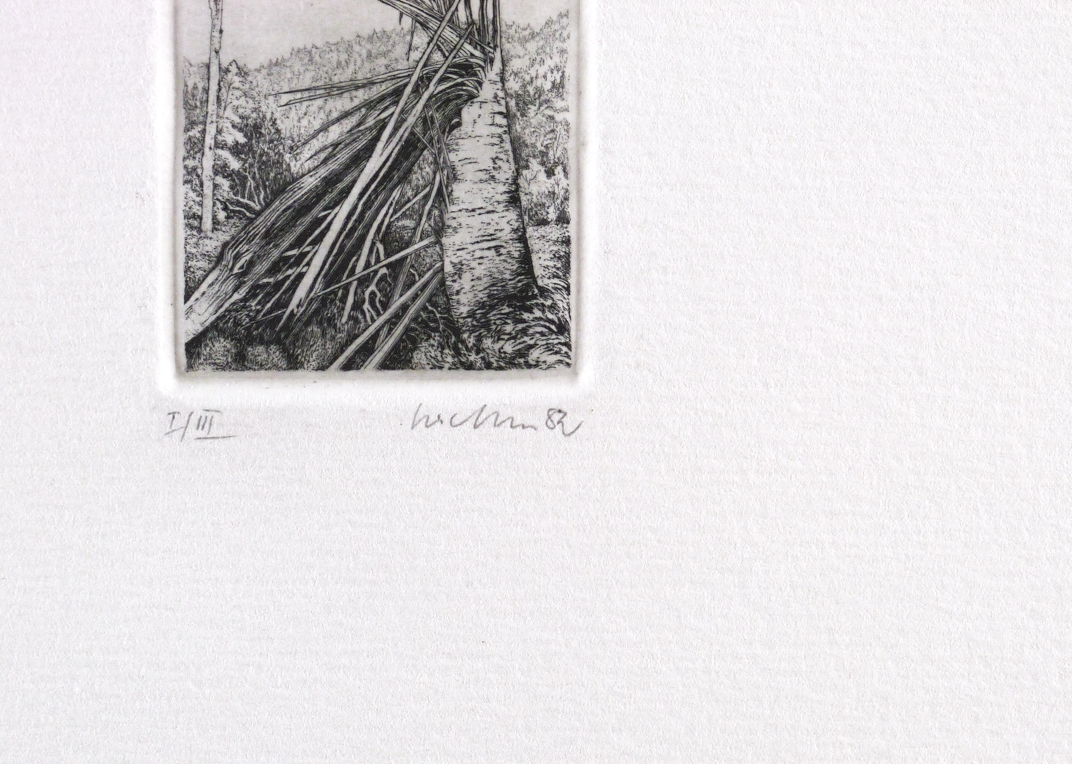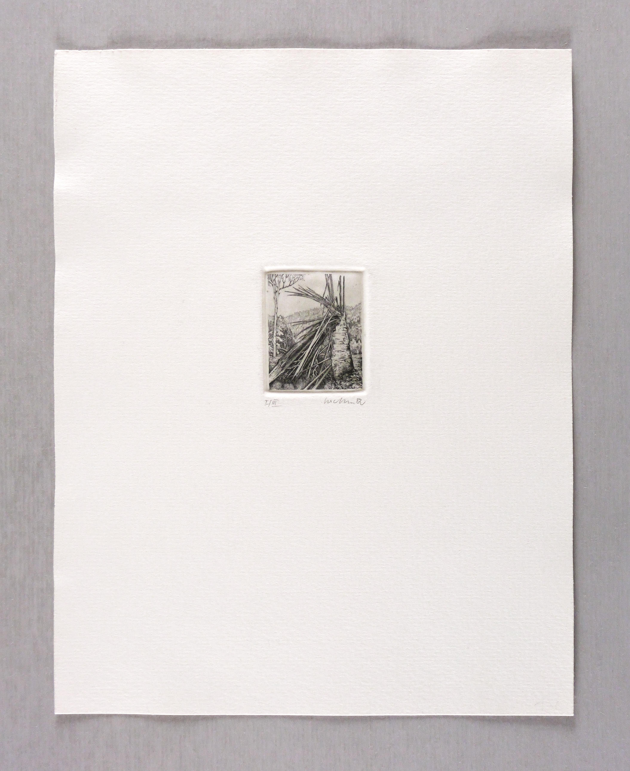 1982. Radierung / Strichätzung, in Schwarz, auf hellchamois Weißenborn. – Originale Künstlergrafik, von Gerenot Richter. – Auflage Exemplar Nr. I/III. – 5,0 x 4,0 cm (Darstellung / Platte), 25 x 20 cm (Blatt).